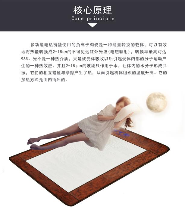 多功能理疗垫通过特种陶瓷颗粒这个能量转换的载体,吸收电、热、光、磁转换出的2-18微米远红外作用于人