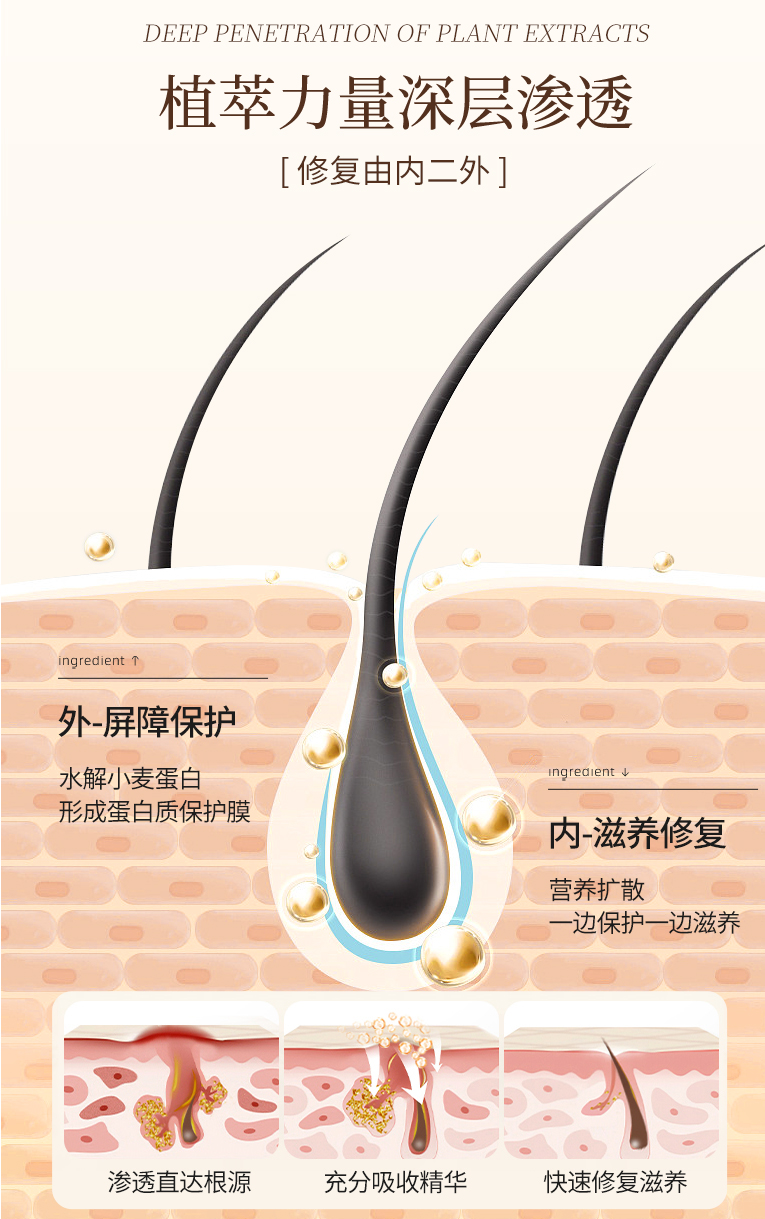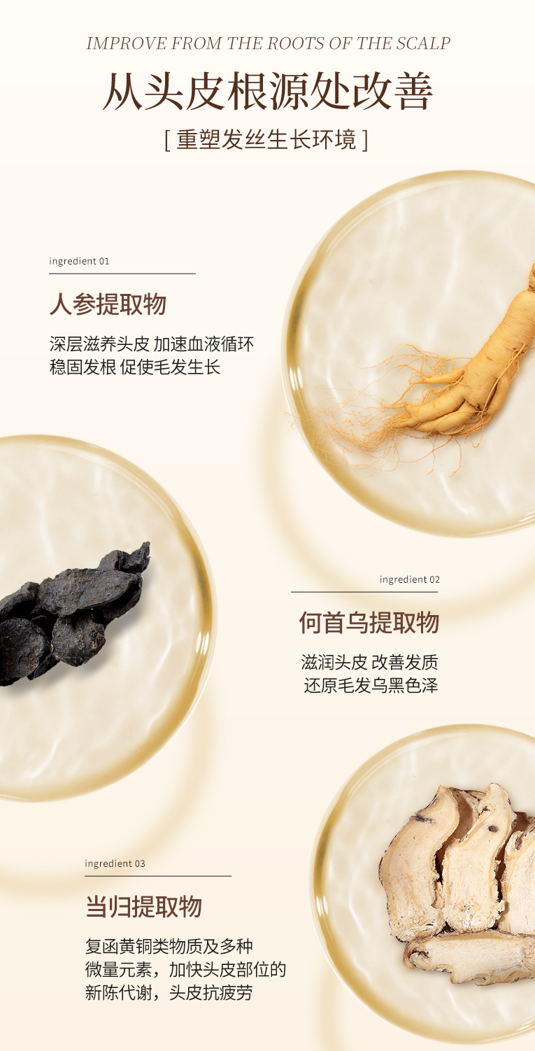 从头皮根源处改善,重塑发丝生长环境,改善头皮微循环修复受损毛囊