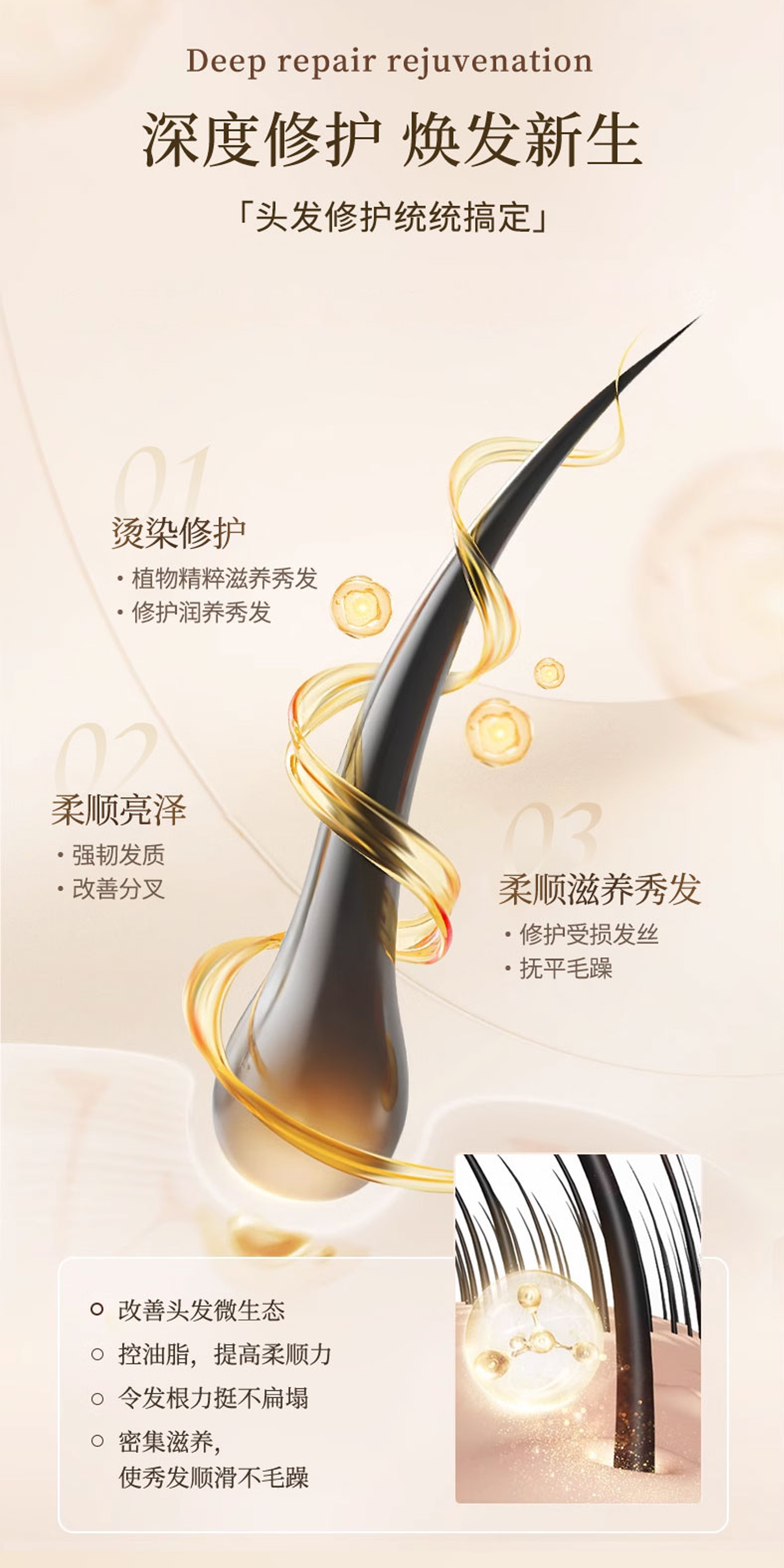 改善干枯毛躁,轻盈配方,无惧油腻烦恼,仿秀发原生营养,渗入发芯