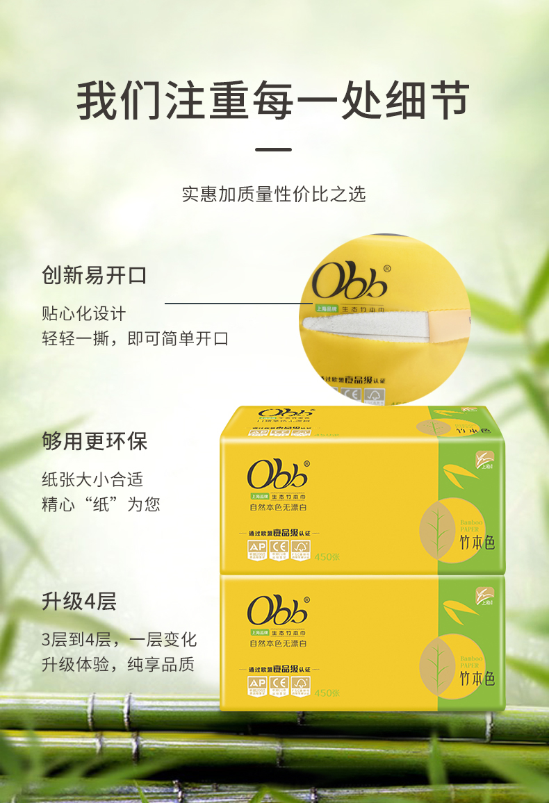 OBB-生态竹本抽取纸巾450张