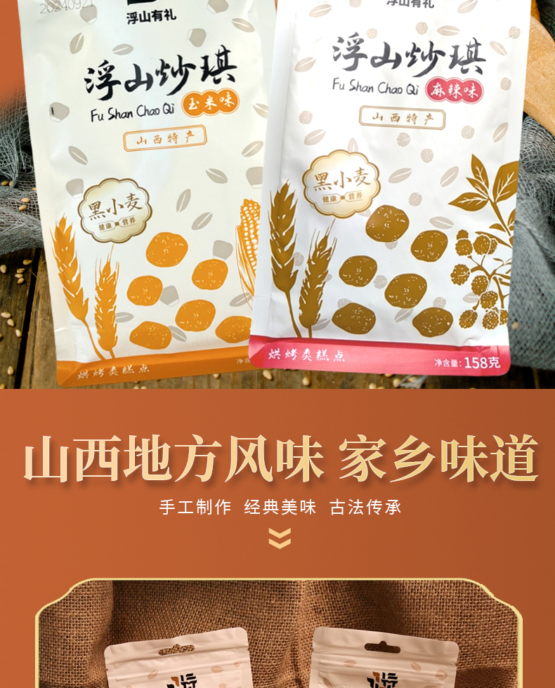 山西特产浮山黑小麦炒琪两袋装(四种口味随机发货:麻辣味、玉米味、椒叶味、孜然味)316g/2袋袋