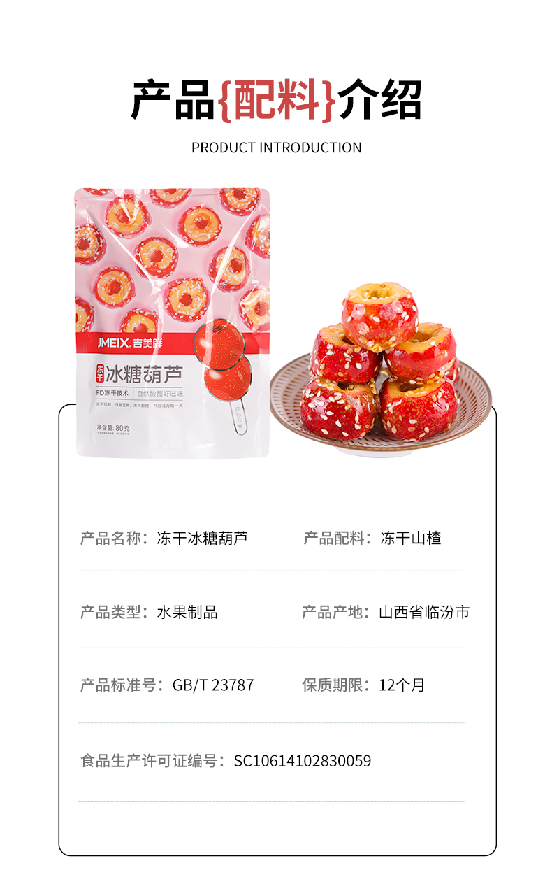 配料表:冻干山楂 白砂糖 单晶体冰糖 白芝麻