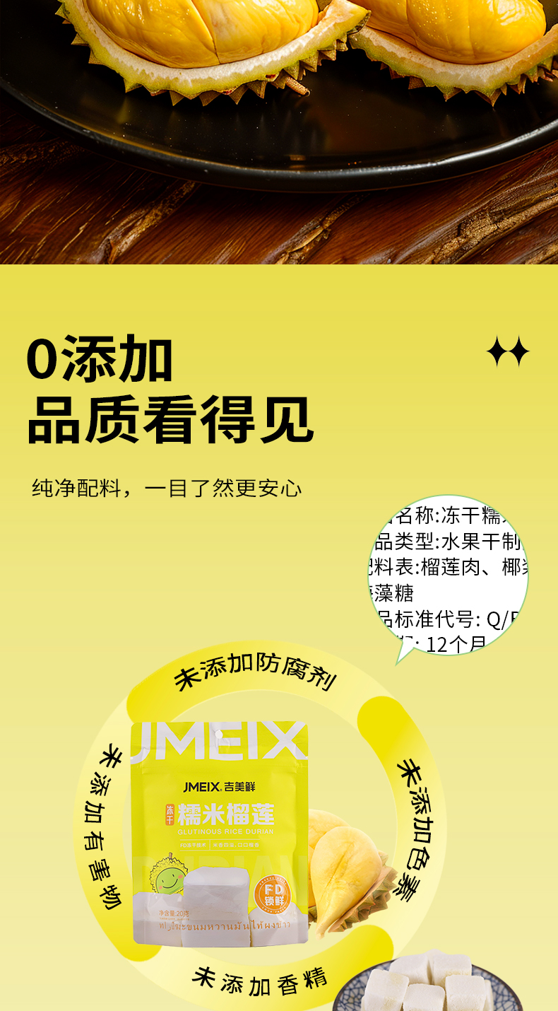 JMEIX吉美鲜冻干榴莲冻干榴莲20g*3袋黄色袋