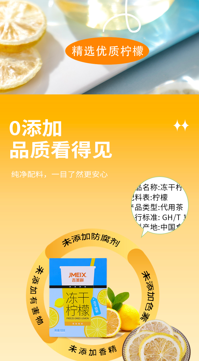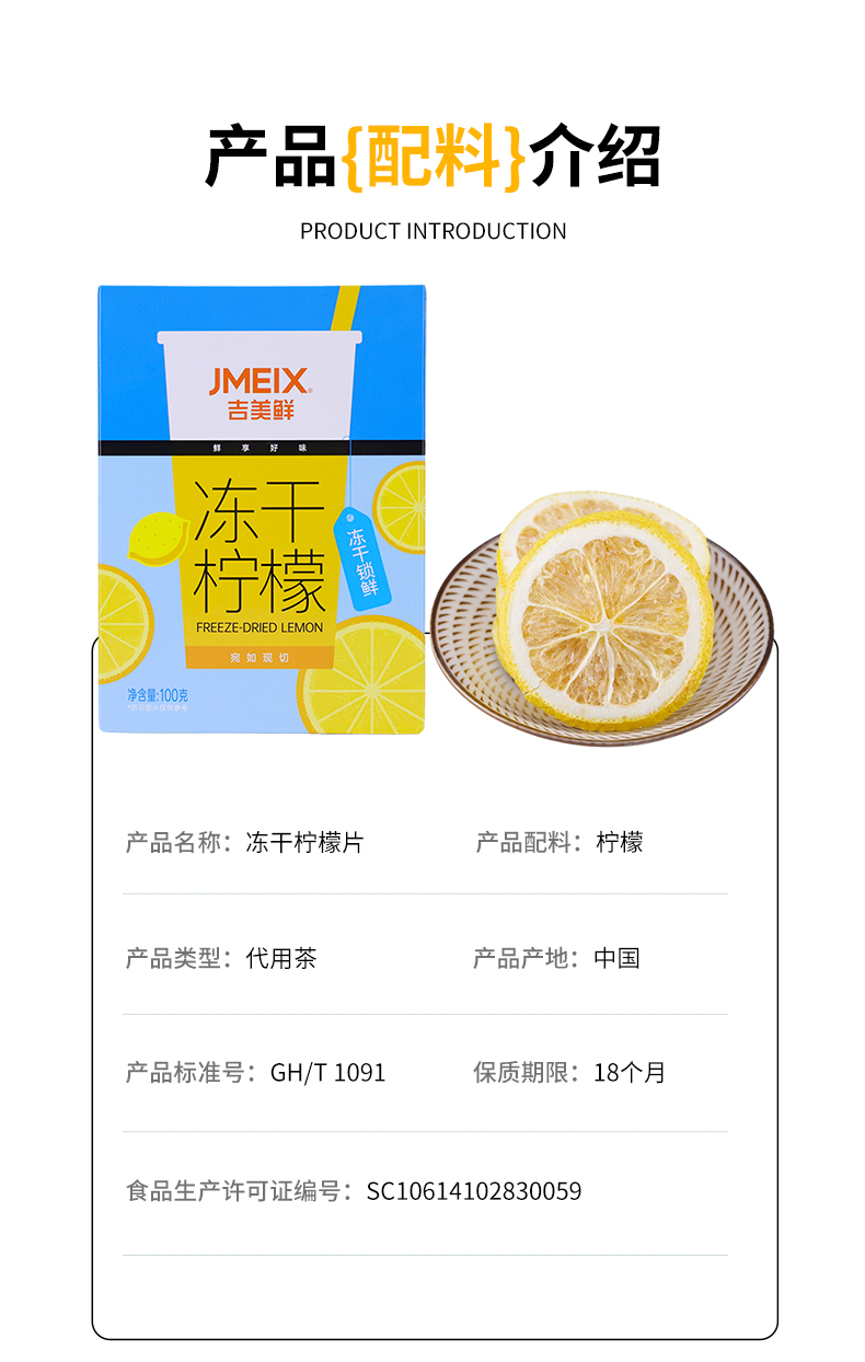 JMEIX吉美鲜冻干柠檬冻干柠檬100g*4盒蓝白黄盒