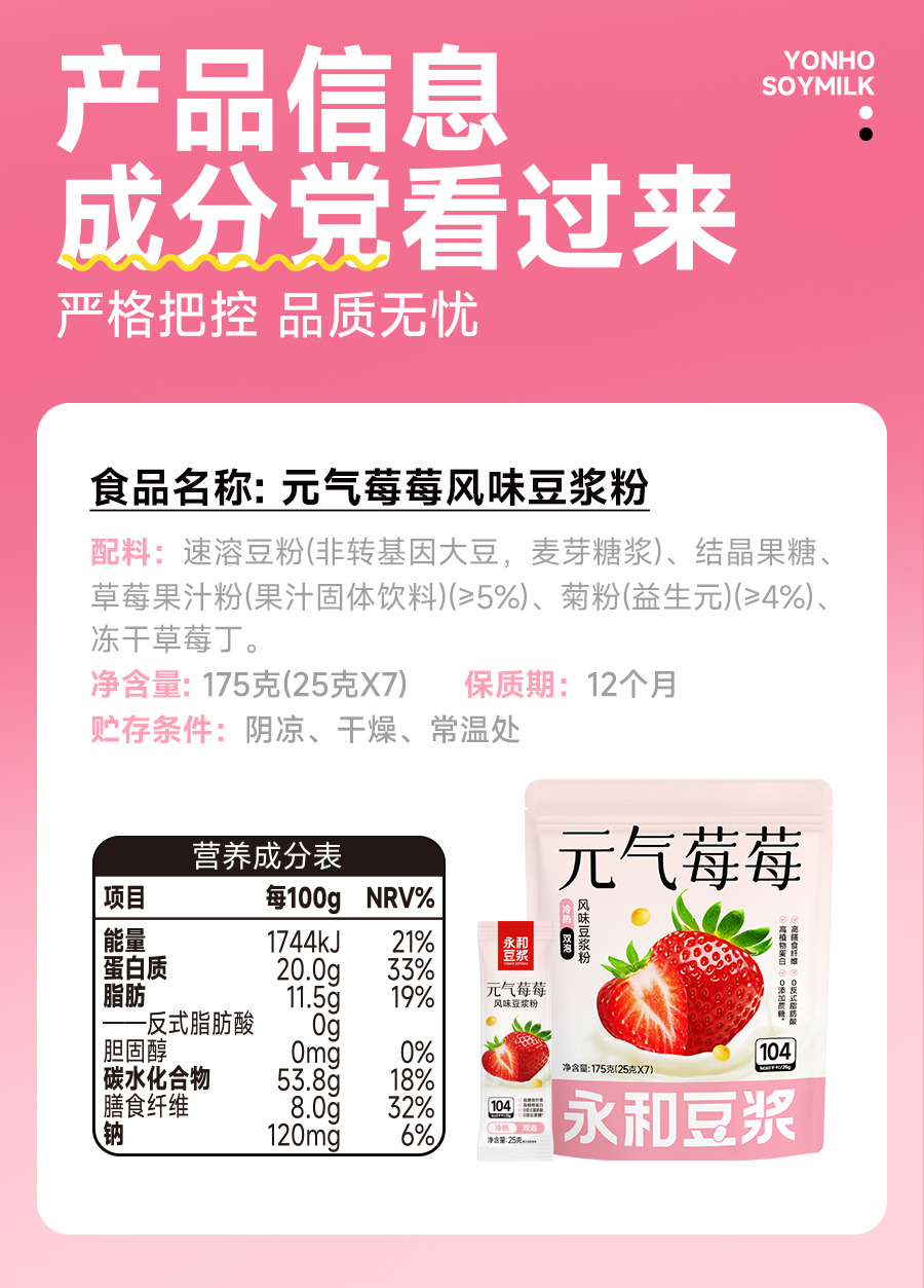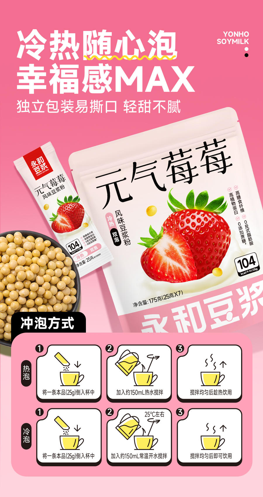 永和豆浆元气草莓风味豆浆粉175g*2袋