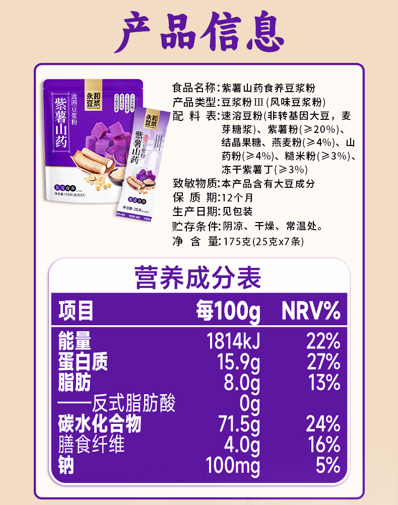 永和豆浆紫薯山药豆浆粉175g*2袋