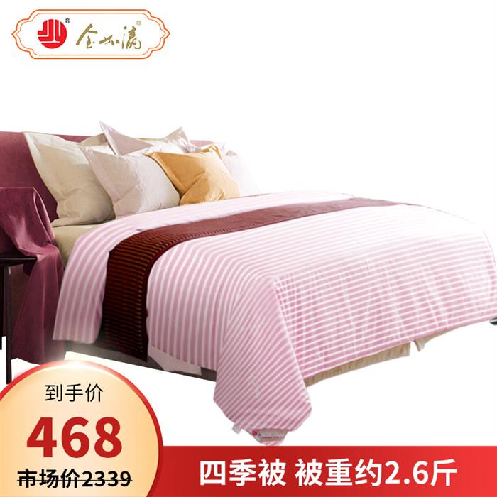 金加瀛 A类表布 四季通用 粉色条纹高端优等品手工蚕丝贡被 被重2.6斤