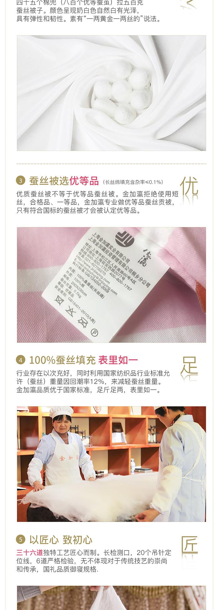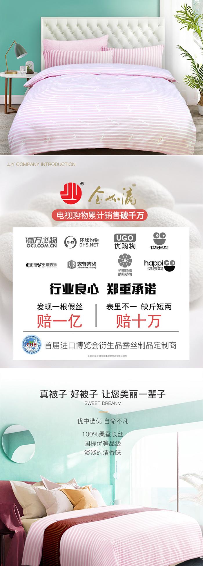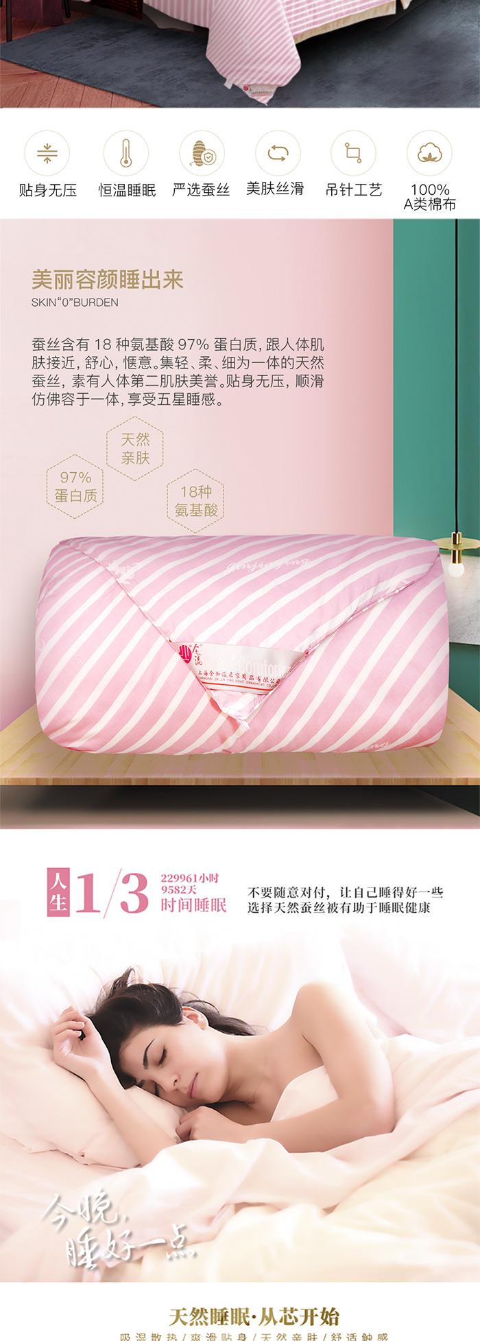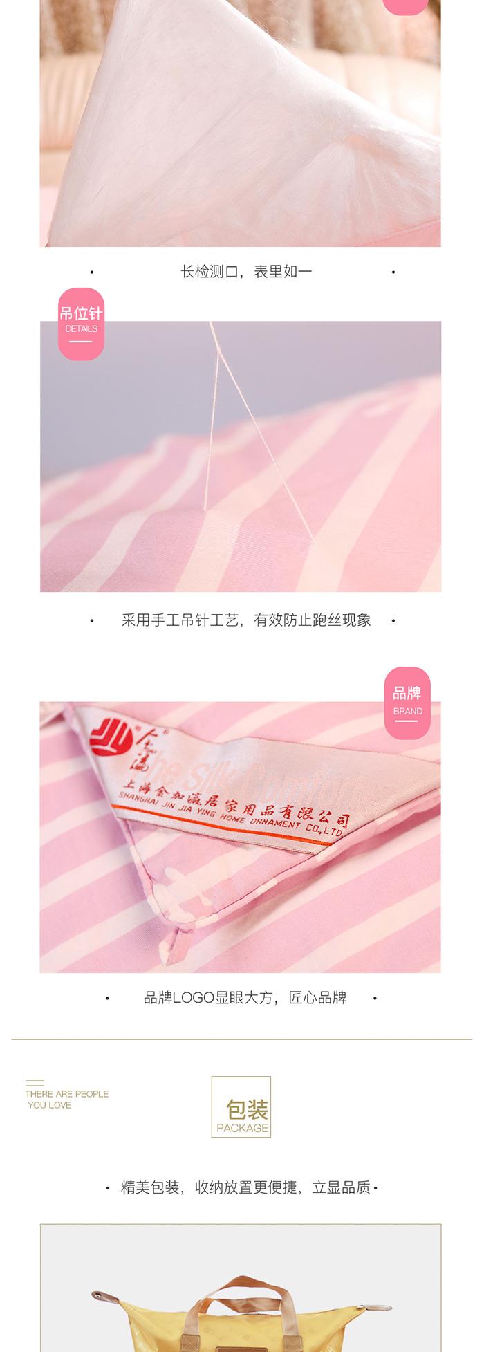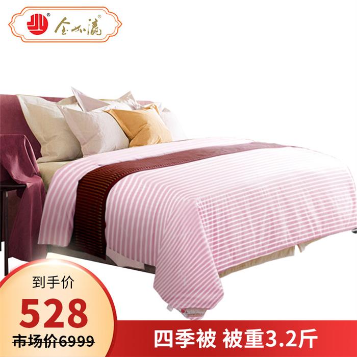 金加瀛 A类表布 四季通用 粉色条纹高端优等品手工蚕丝贡被 被重2.8~3.2斤