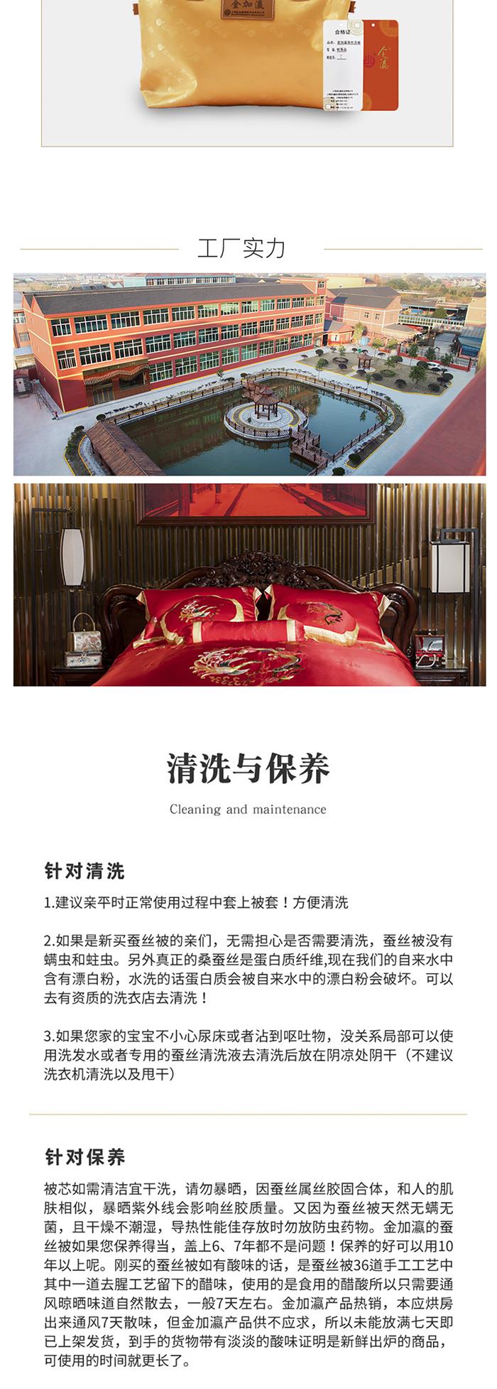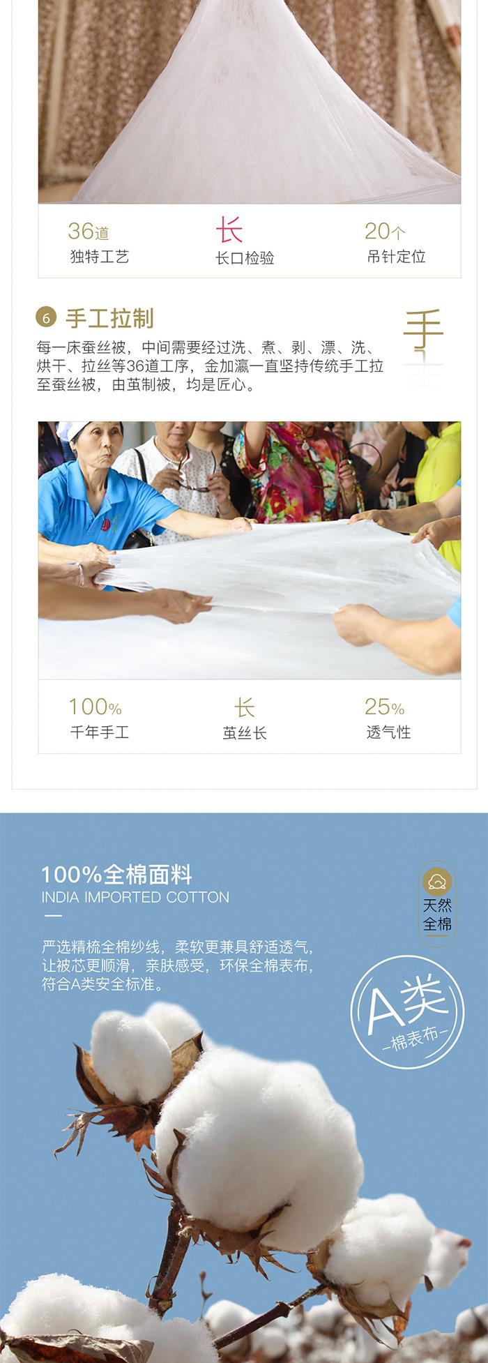 等级:优等品 表布:100%棉 填充物:100%柞蚕丝 丝重:400g 被重:2.8~3.2斤