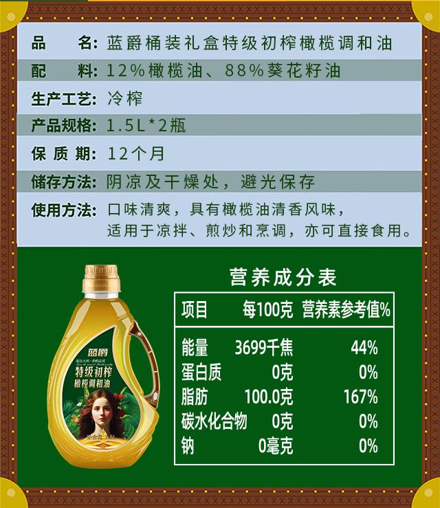 蓝爵-特级初榨橄榄调和油 礼盒装1.5L*2