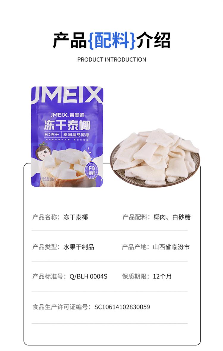 JMEIX吉美鲜冻干泰椰30g冻干泰椰30g*3袋紫色袋