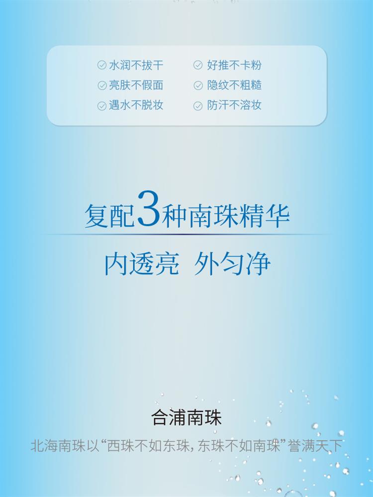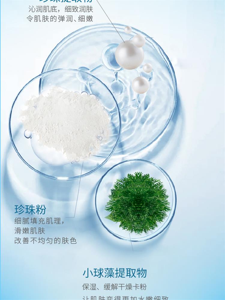具有隔离彩妆、脏空气等外界污染功效;质地轻柔水润,蕴含细腻珍珠粉成分,修饰面部的暗沉、肤色不均,持妆