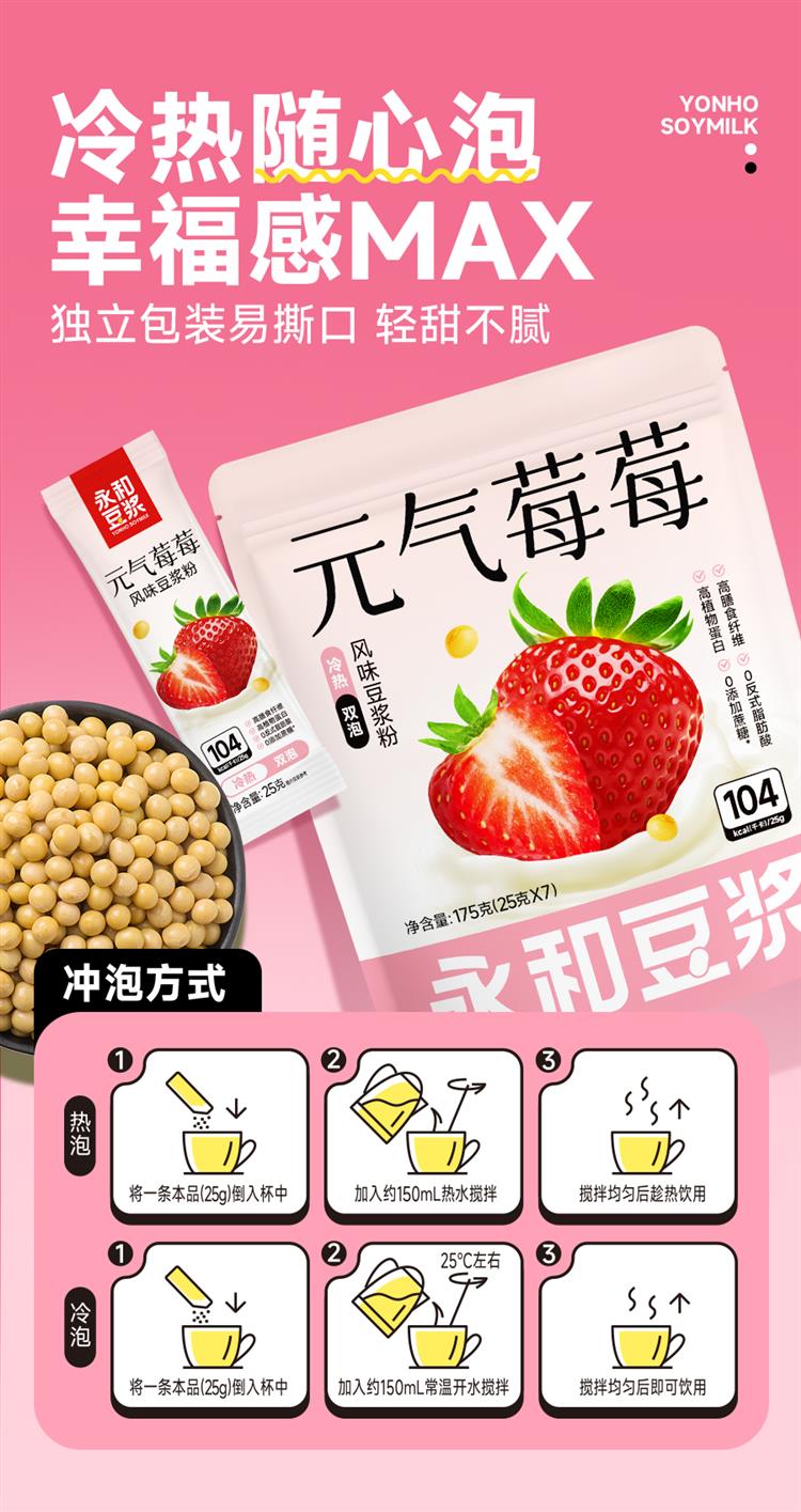 永和豆浆元气草莓风味豆浆粉175g*2袋
