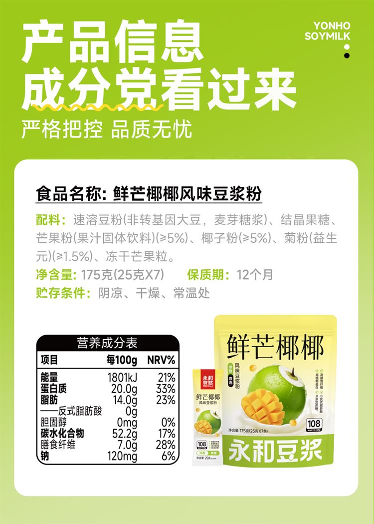 永和豆浆鲜芒椰椰风味豆浆粉175g*2袋