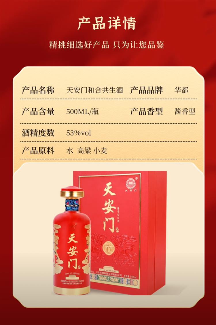 “天安门和合酒”出自华都酒业,它最大的亮点在于其出色的酒体,采用20年的优质酒体精心调配,历经岁月沉淀的醇厚口感,入口便能感受到独特风味。酒液色泽微黄,清亮透明 ,酱香浓郁且细腻,伴随着淡淡的焦香、粮香,诸味协调。下咽顺滑,回味悠长,空杯留香持久,给饮者带来丰富且美妙的味觉盛宴。